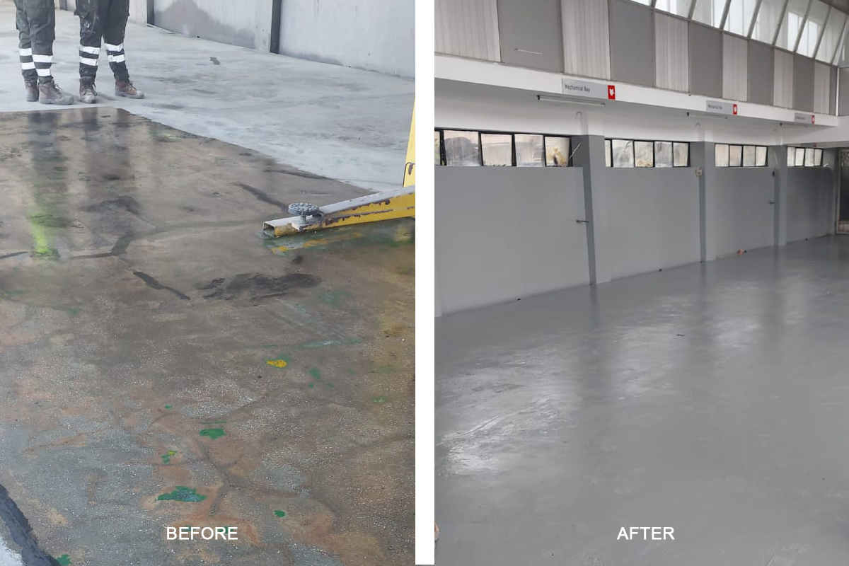 After Floor Crack reparations and renditions at TOYOTA WORKSHOP, Bonne-Terre Vacoas.